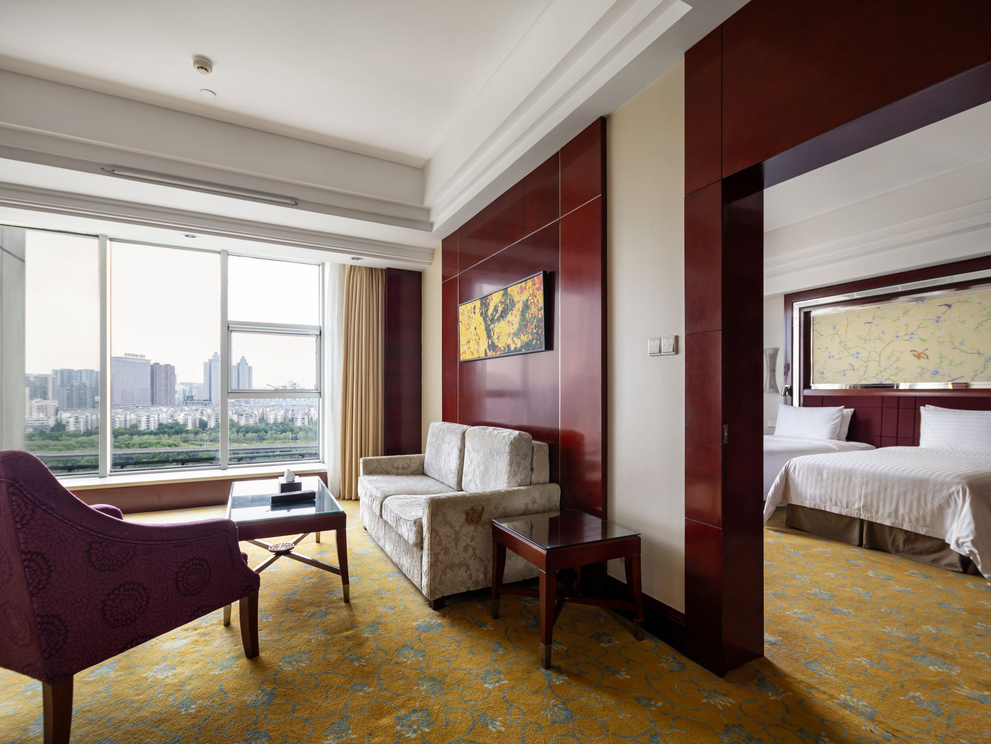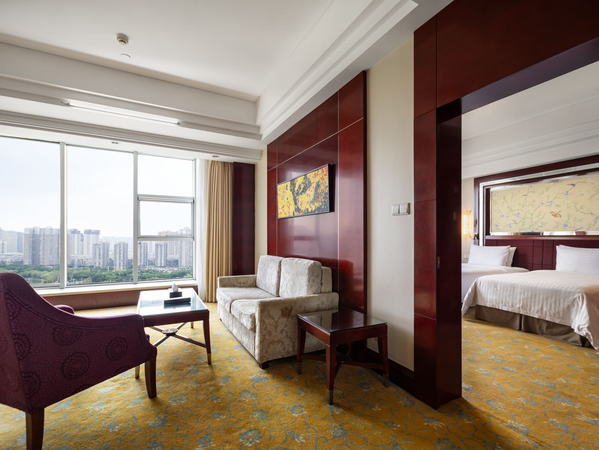 园景· 豪华双床套房(客厅+卧室+落地景观+浴缸)